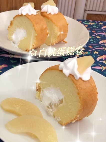 夫人又做了🍑白桃蛋糕卷 🍑 。。。